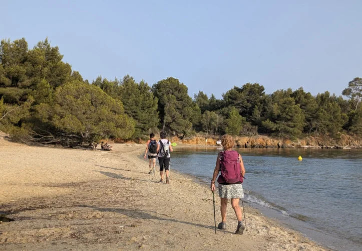 L’eau turquoise, peu profonde et sans grandes vagues, en fait un lieu idéal pour les enfants et ceux qui aiment se baigner en toute sérénité. Le paysage environnant, quant à lui, dévoile une vue magnifique sur les îles d’Hyères, notamment Porquerolles.