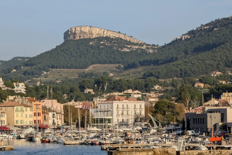 Passée la plaine littorale cassidaine, la terre s’élève à nouveau : c’est le troisième massif, celui de Canaille, qui se prolonge jusqu’aux calanques de La Ciotat et l’île Verte, limite orientale du Parc national. D’une autre nature géologique, sa dominante ocre rouge tranche avec le blanc éclatant des calanques de Marseille. Il est constitué de calcaire, de grès et de poudingue, une roche composée de débris de galets agglomérés. Le mot provient de l’anglais pudding, lui-même issu du français boudin. Les Calanques, ce sont aussi plusieurs milliers d’hectares d’aire marine, où les falaises se prolongent sous la surface de l'eau, et où se creuse le canyon sous-marin de Cassidaigne. Celui-ci descend jusqu'aux abysses à plus de 1500 mètres de profondeur.