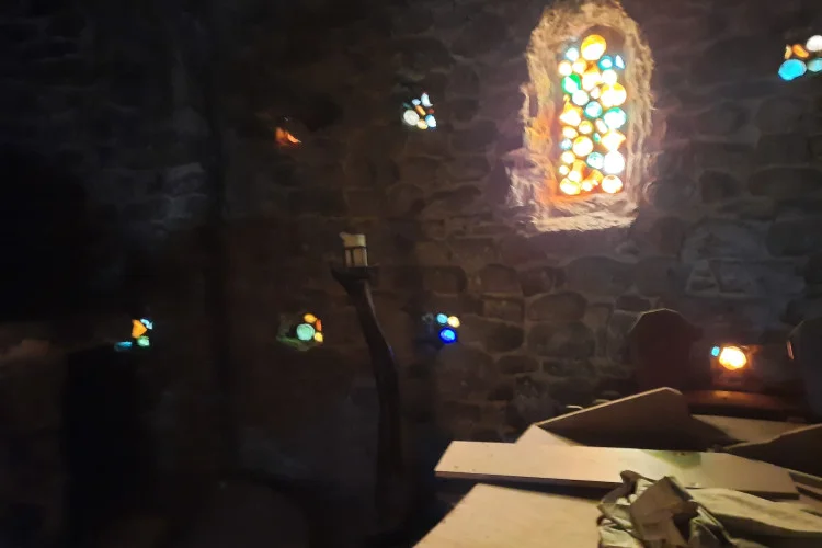 La chapelle est constituée de trois nefs juxtaposées disposant chacune d’une abside. Les vitraux ont été réalisés avec des fonds de bouteilles de toutes les couleurs, et sont censés avoir chacun un sens biblique. Derrière l’autel Nord, une statue de la Vierge à l'Enfant en bois doré de sorbier, porte les stigmates de la Révolution. Elle est vénérée depuis le xvie siècle.