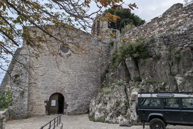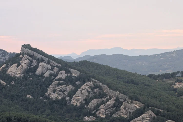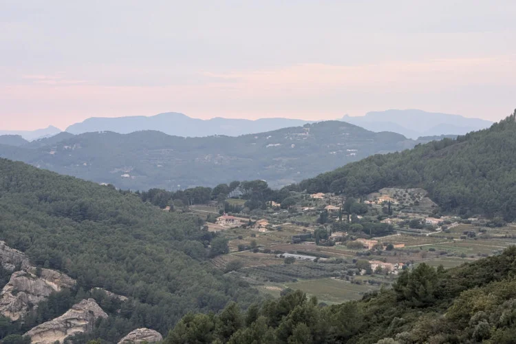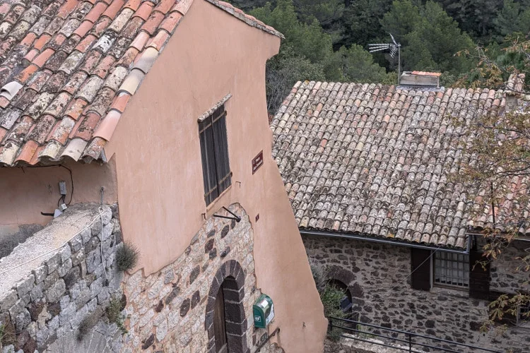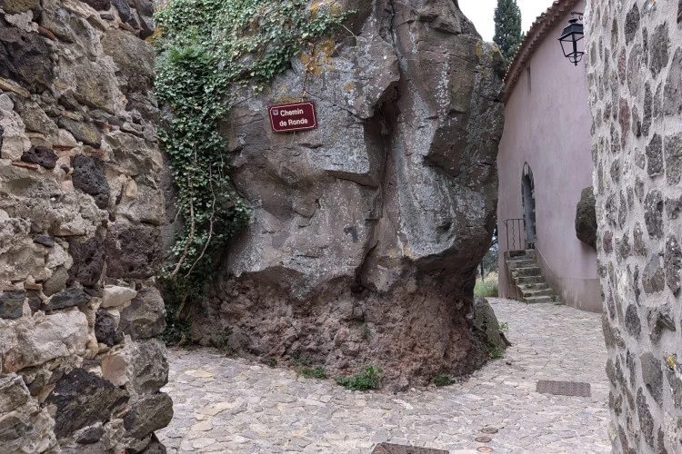 Ce petit village médiéval de Provence dégage une indéfinissable fascination. Arrivés à hauteur d’un oratoire, nous découvrons un décor surprenant, inattendu : d’énormes roches basaltiques nous accueillent. Impressionnés, curieux, nous sommes attirés par les ruelles et les charmantes maisons construites de roches volcaniques, pas de cette couleur noire si caractéristique mais triste. Par coquetterie et avec la complicité des siècles, tous les moellons se sont parés d’une multitude de discrètes couleurs, du gris-vert sombre à marron, par la magie de l’altération et de l’oxydation du fer.